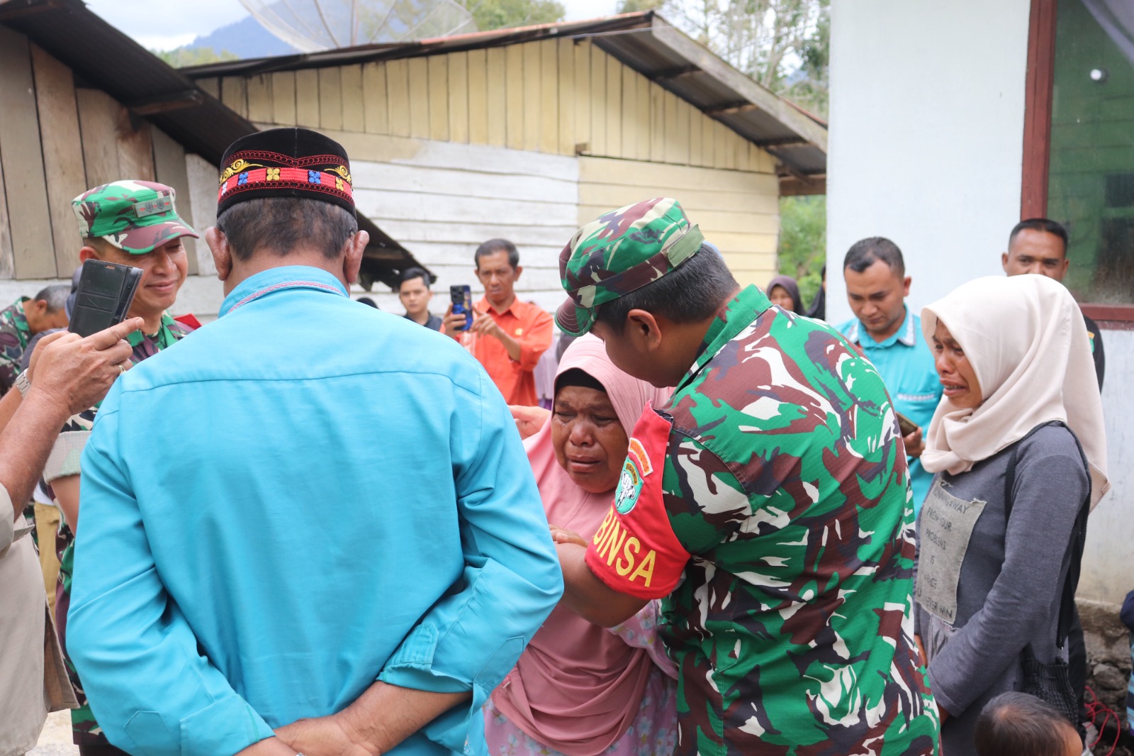 Sertu Riswandi pun tampak tak kuasa menahan haru. Dengan lembut ia memeluk Kasmawati, mencoba menenangkan sang ibu yang tak berhenti menangis bahagia. “Kami hanya ingin melihat masyarakat tersenyum.Ini lah yang dapat saya usulkan dan inilah bentuk pengabdian kami untuk rakyat,” ujarnya singkat dengan suara bergetar.