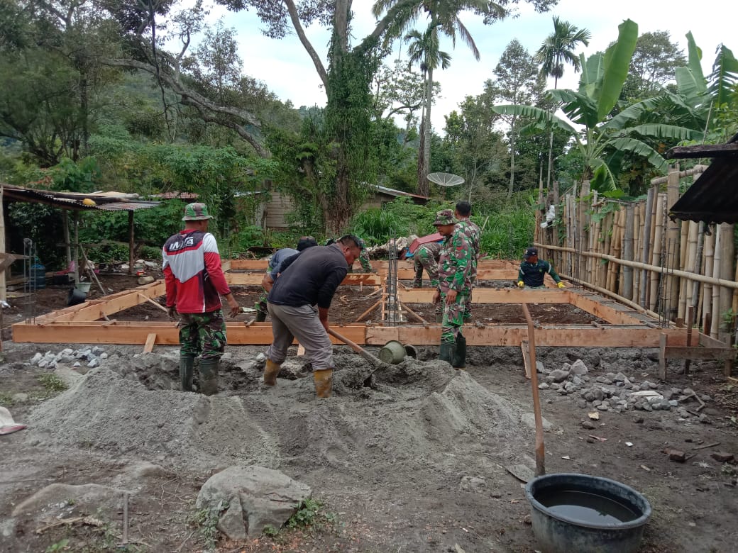ZATTODAY.NET – Aceh Tengah, Satgas TNI Manunggal Membangun Desa (TMMD) ke-126 Kodim 0106/Aceh Tengah terus melanjutkan pengerjaan sasaran fisik dengan mendirikan pondasi rumah warga milik ibu Kasnawati yang menjadi bagian dari program rehabilitasi rumah tidak layak huni (RTLH) di desa roteh kec, Silih Nara Kab. Aceh Tengah. Sabtu, 18 Oktober 2025.