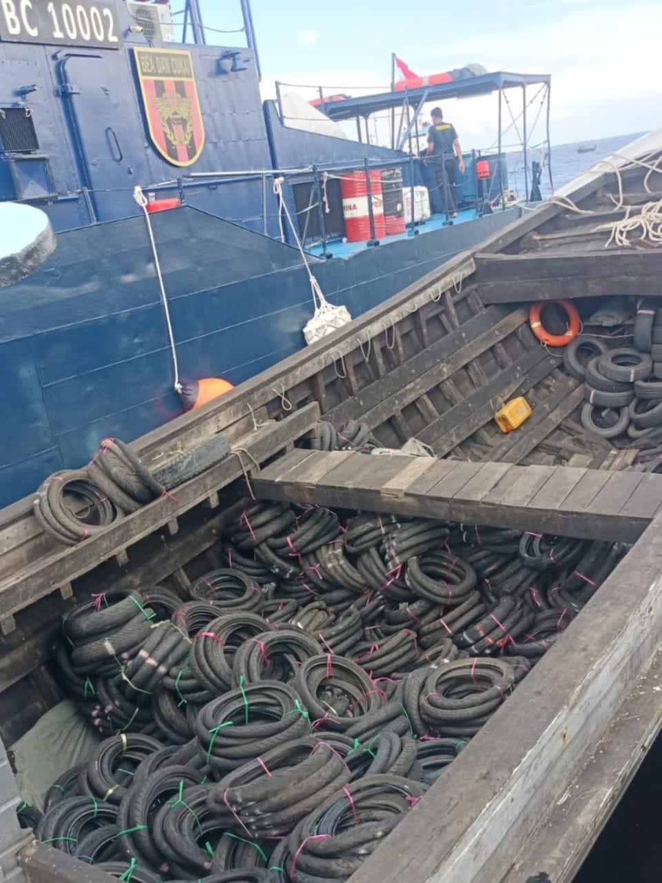 Setelah pemeriksaan, diduga sarana pengangkut laut tersebut melakukan pelanggaran kepabeanan dengan mengangkut barang impor tanpa dokumen yang sah. Kapal beserta muatan kemudian dilakukan penegahan dan penyegelan, lalu dibawa ke kantor pabean terdekat, KPPBC TMP B Dumai.