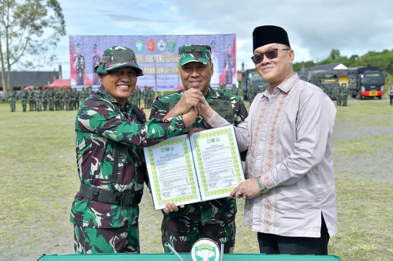 ZATTODAY.NET – Bupati Bener Meriah, Ir. H. Tagore Abubakar, menandatangani berita acara hasil kegiatan TNI Manunggal Membangun Desa (TMMD) Ke‑126 pada upacara penutupan yang berlangsung di lapangan Desa Bale Atu, Kecamatan Bukit, Kamis (06‑11‑2025). Upacara tersebut juga dihadiri Wakil Bupati Bener Meriah, Ir. H. Armia, serta sejumlah pejabat Forkopimda, ketua organisasi wanita, kepala OPD, reje kampung, kepala bank cabang, dan masyarakat setempat.