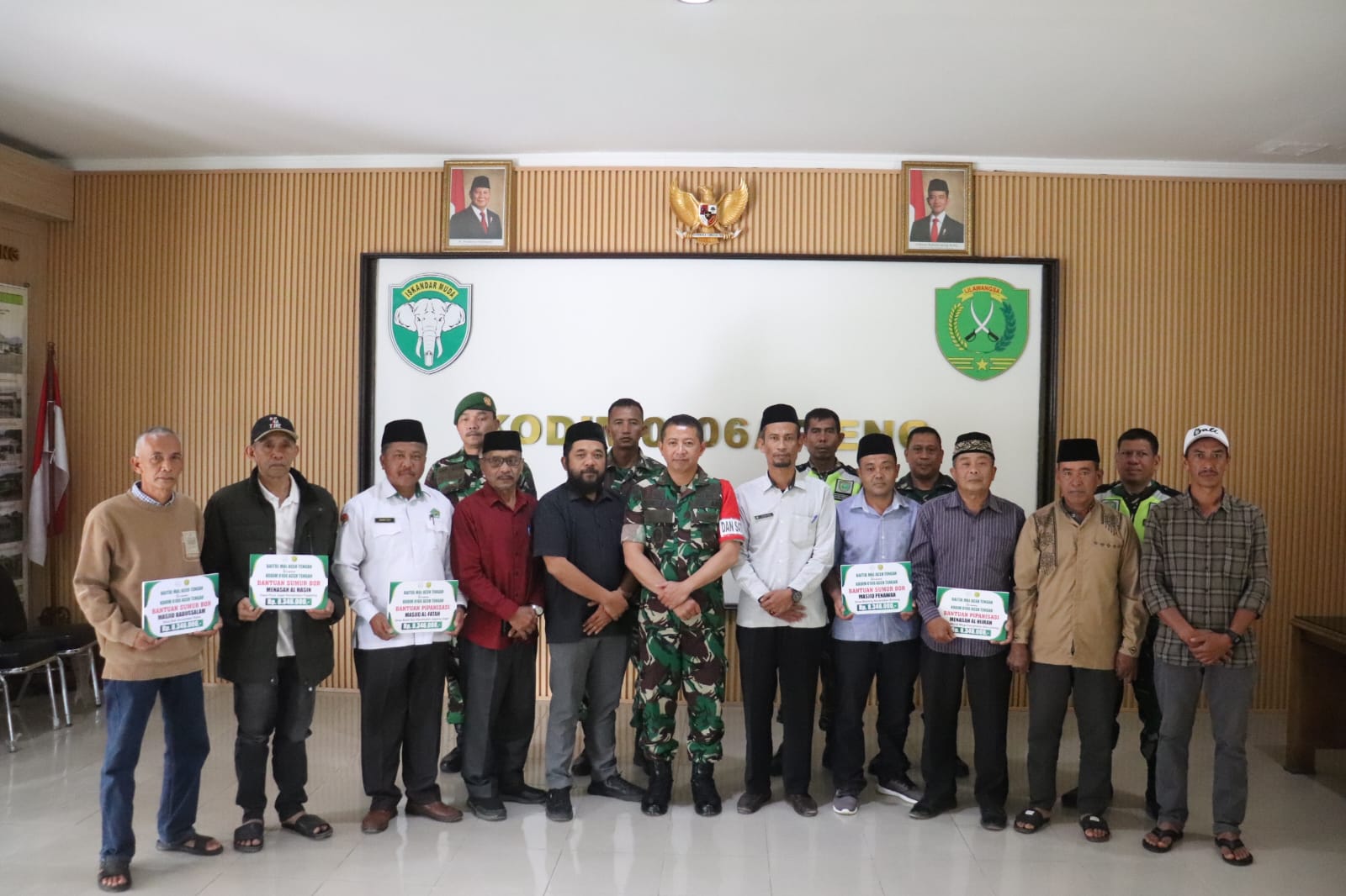 ZATTODAY.NET – Aceh Tengah, Dansatgas TMMD Ke 126 Letkol Inf Raden Herman Sasmita menyerahkan dana bantuan sumur bor dan pipanisasi kepada Imam Masjid untuk 5 kecamatan khususnya akses air bersih bertempat di aula Makodim. 0106/Aceh Tengah jalan lut tawar kpg bale atu kec lut tawawr Kab, Aceh Tengah. Selasa, 14 Oktober 2025.