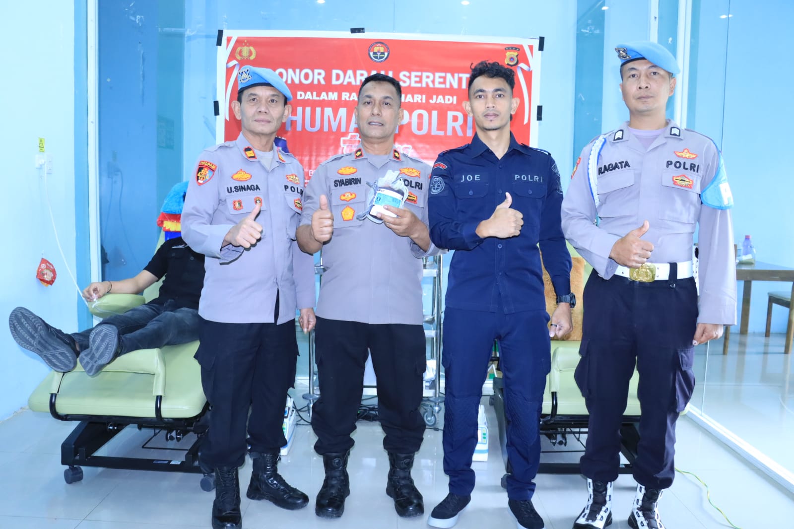 Kompol Syabirin menyampaikan bahwa kegiatan donor darah ini merupakan bentuk kepedulian Polri terhadap sesama serta wujud nyata semangat humanis yang diusung dalam tema HUT Humas Polri tahun ini.
