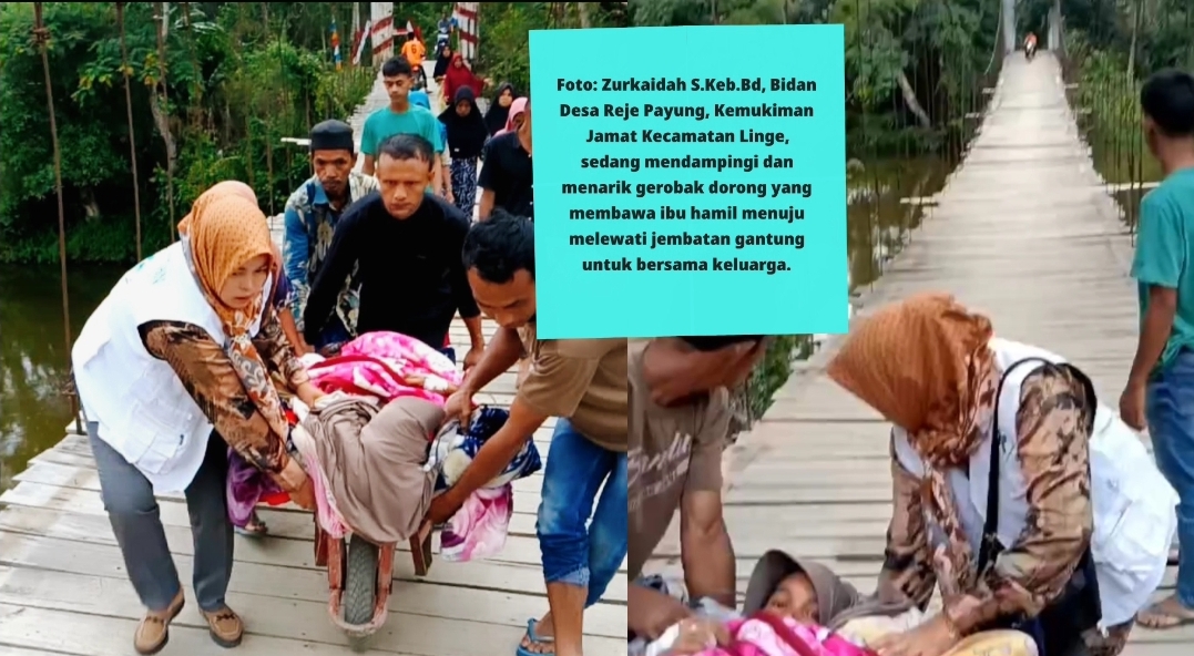 ZATTODAY.NET – Aceh Tengah, Di hari ke-80 kemerdekaan Indonesia, sebuah kejadian menarik perhatian di Aceh Tengah. Seorang ibu hamil bernama Intan pada Kamis (27/8/2025) terpaksa diangkut menggunakan gerobak sorong (grek sorong) melewati jembatan gantung sepanjang 20 meter untuk menuju RSUD Datu Beru Takengon. Intan di kabarkan mengandung bayi kembar dan harus dirujuk ke rumah sakit karena usia kehamilan belum mencapai jadwal persalinan.