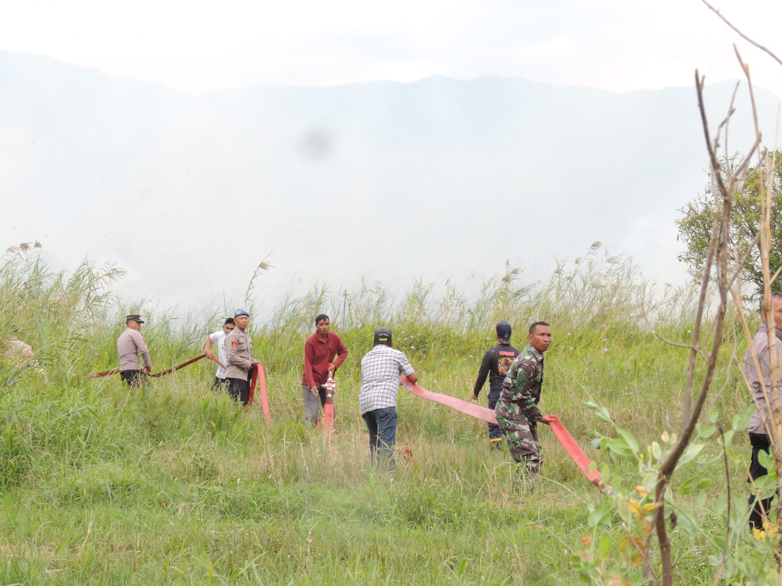 Camat juga menjelaskan bahwa tim pemadam kebakaran, TNI, Polri, dan pihak kecamatan bekerja sama untuk memadamkan api. “Kita belum tahu berapa luas akibat kebakaran ini, kita belum tahu penyebab kebakaran tapi bisa jadi ini dibakar secara sengaja atau tidak, kita nanti dari Polsek dan Koramil serta pihak kecamatan mencari tahu apa penyebab kebakaran ini,” jelasnya.