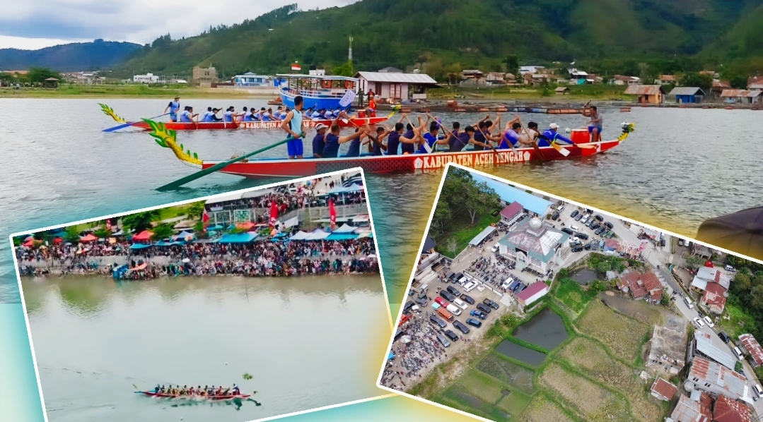 ZATTODAY.NET – Aceh Tengah, Ribuan penonton memadati objek wisata Desa Mendale, Kabupaten Aceh Tengah, untuk menyaksikan pembukaan Perlombaan Perahu Naga di Danau Lut Tawar pada Sabtu, 23 Agustus 2025. Acara ini dimeriahkan dengan kehadiran Bupati dan Wakil Bupati Aceh Tengah, serta pejabat pemerintah lainnya, termasuk Dandim dan perwakilan dari Polres Aceh Tengah.