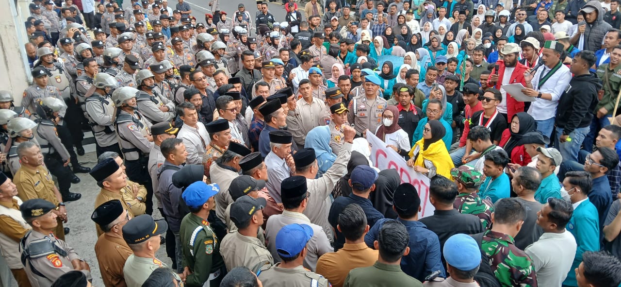 ZATTODAY.NET – Aceh Tengah, Ratusan mahasiswa melakukan aksi demo di depan kantor DPRK Aceh Tengah, dengan meminta Ketua, Wakil Ketua, dan anggota DPRK untuk berbaris dan memanggil nama-nama anggota DPRK untuk diabsen. Aksi ini merupakan lanjutan dari penyampaian aspirasi mahasiswa di depan Mapolres Aceh Tengah yang telah ditanggapi oleh Kapolres Aceh Tengah. Senin, 1 September 2025.
