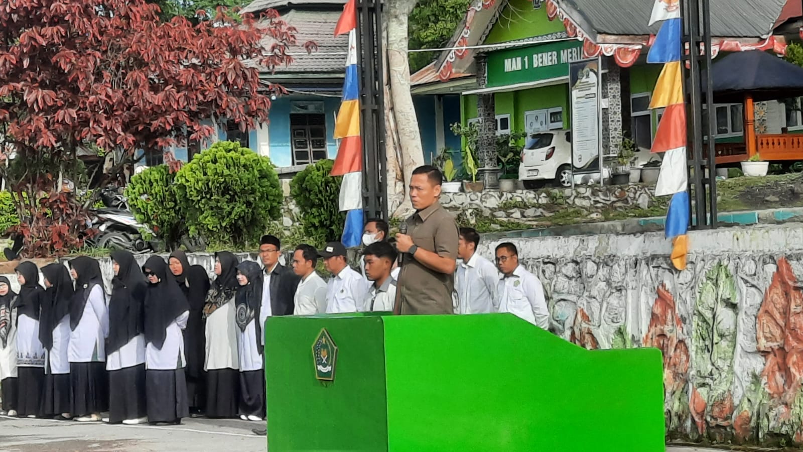 Kegiatan yang berlangsung di lapangan sekolah itu dimulai pukul 07.35 WIB dan turut dihadiri oleh Kepala MAN 1 Bener Meriah M. Tajri, S.Pd.I, dewan guru, serta seluruh peserta didik.