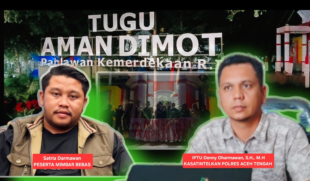Saat dikonfirmasi secara langsung kepada Kasat Intelkam di Kantor Mapolres Setempat terkait insiden kejadian di mimbar bebas, yang mana Kapolres Aceh Tengah melalui Kasat Intelkam, Iptu Denny Dharmawan, S.H,. M.H,. menegaskan bahwa tidak ada larangan bagi masyarakat untuk melakukan penyampaian pendapat di muka umum.